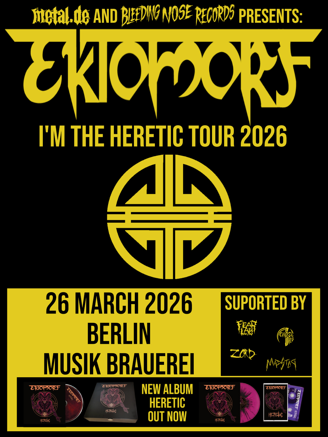 Die Heretic Release Shows 2025 haben klar gemacht, wie groß die Nachfrage ist. 2026 folgt die Fortsetzung: EKTOMORF gehen mit der I’M THE HERETIC TOUR 2026 wieder auf die Straße und bringen im März und April eine Europa Route mit Schwerpunkt Deutschland auf die Clubbühnen.